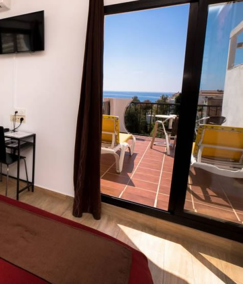 Nuestras habitaciones, acogedoras y luminosas, disfrutan de unas vistas excepcionales a la sierra de Almijara y al mar Mediterráneo.